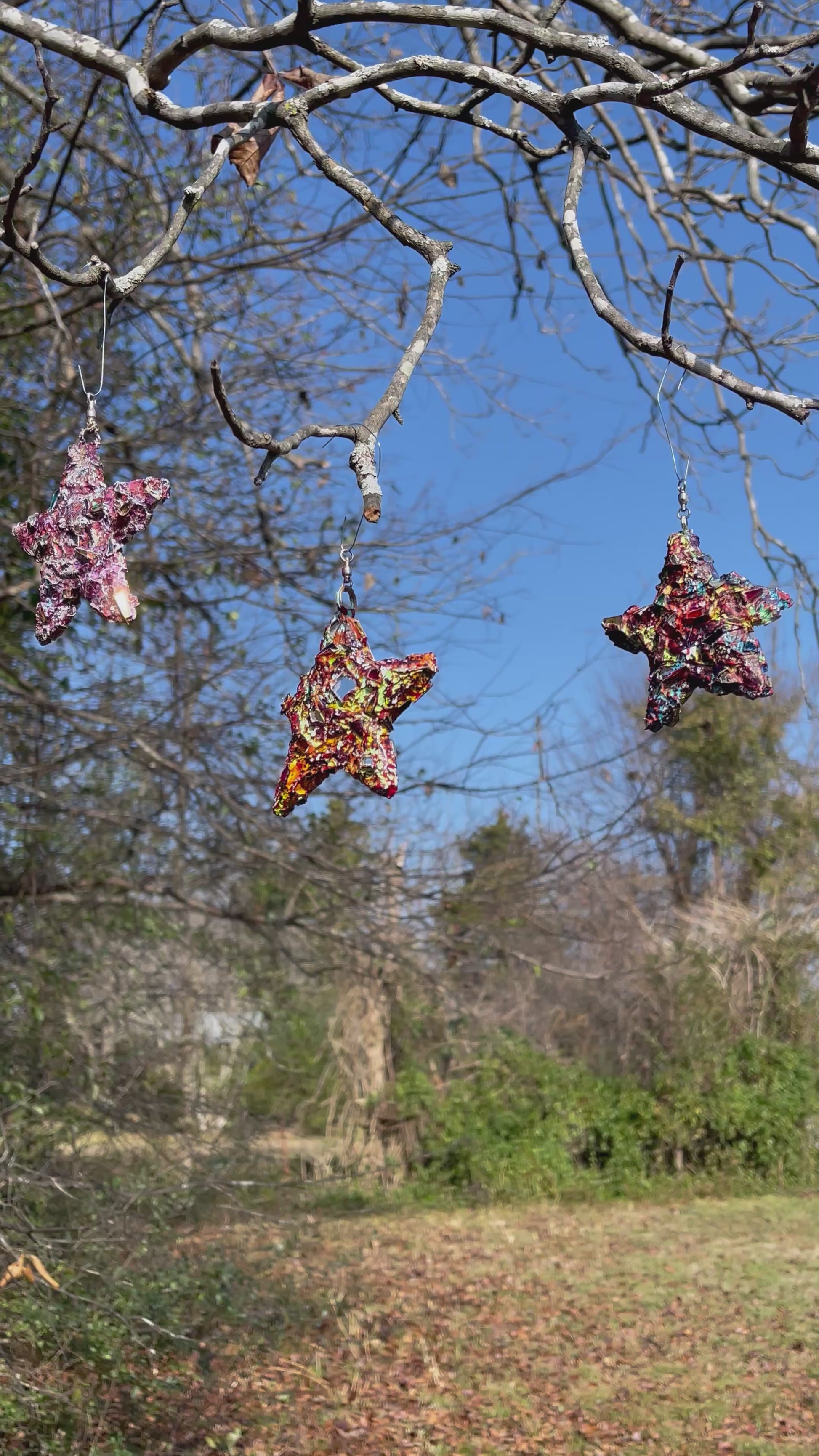 Star is totally repurposed from cardboard and bottle caps and mirror bits.