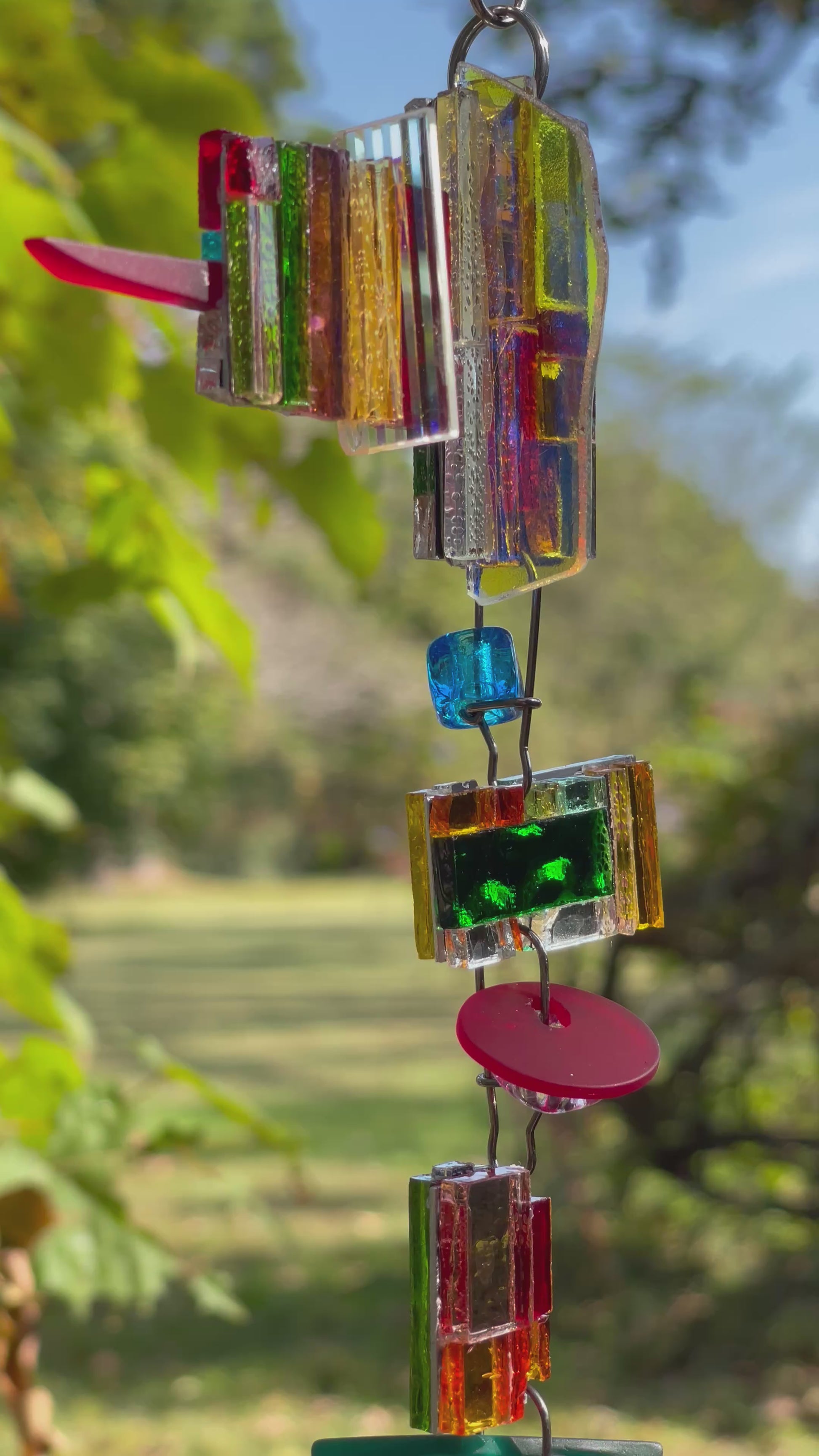 Long (45”) colorful glass and mirror sun chain