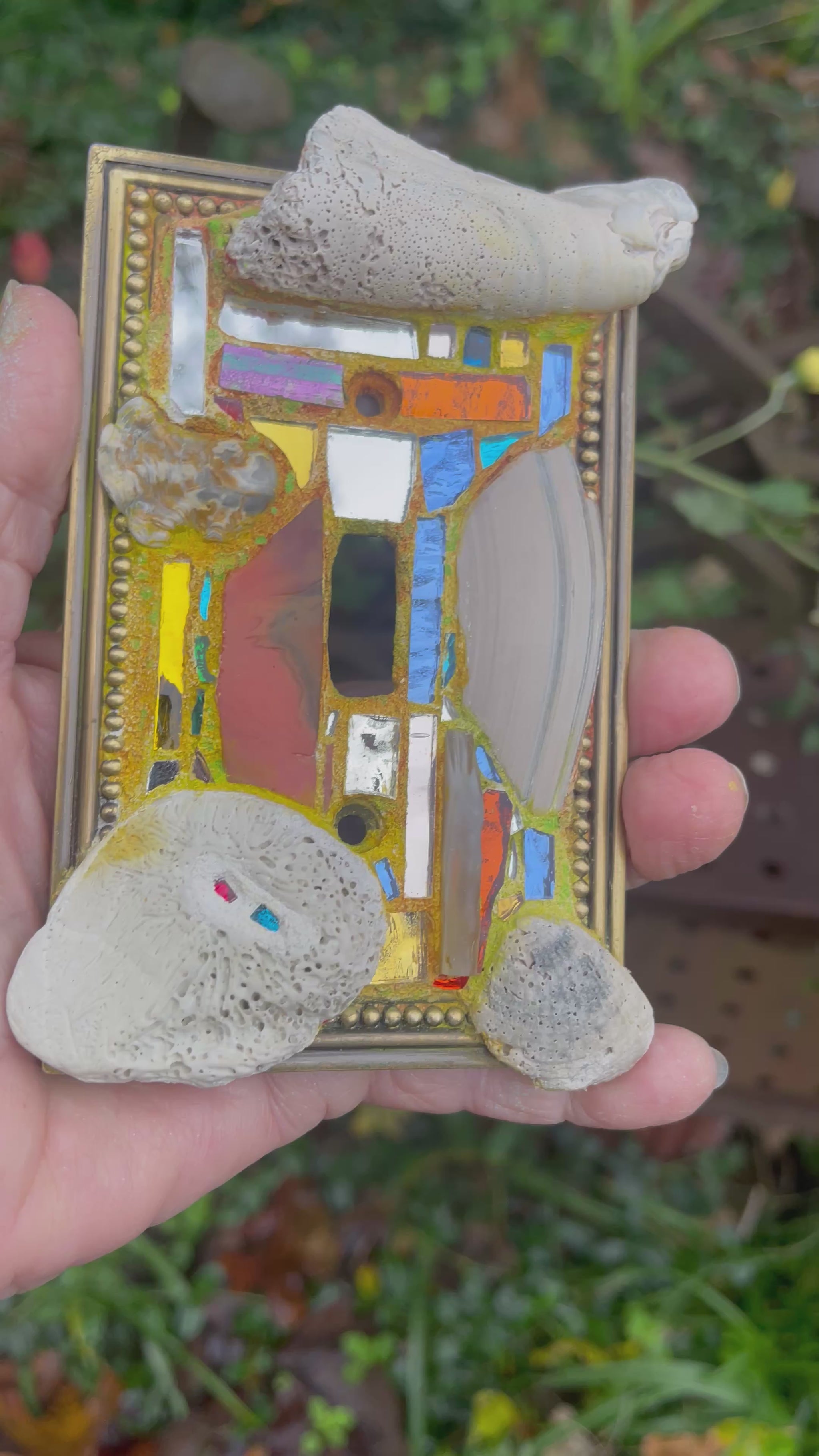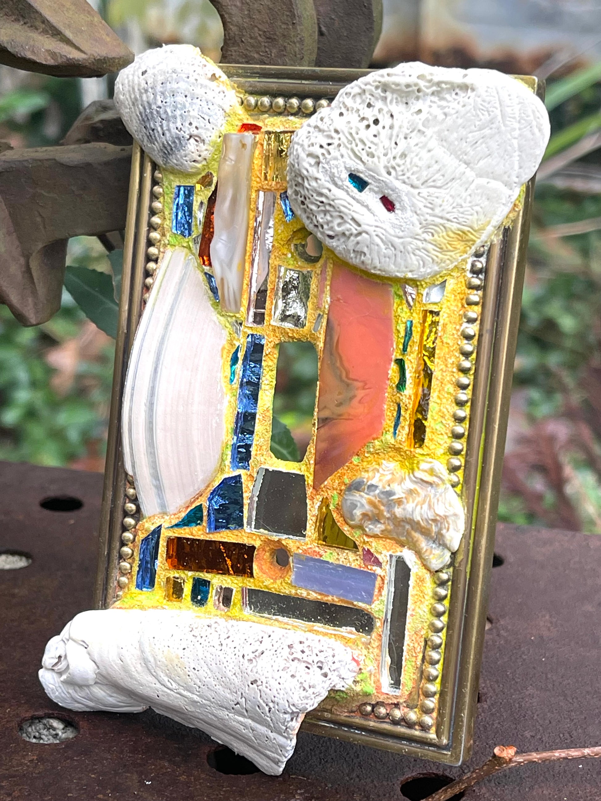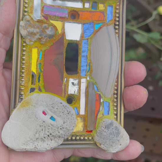 Sea-worn shell and glass mosaic single toggle brass light switch cover