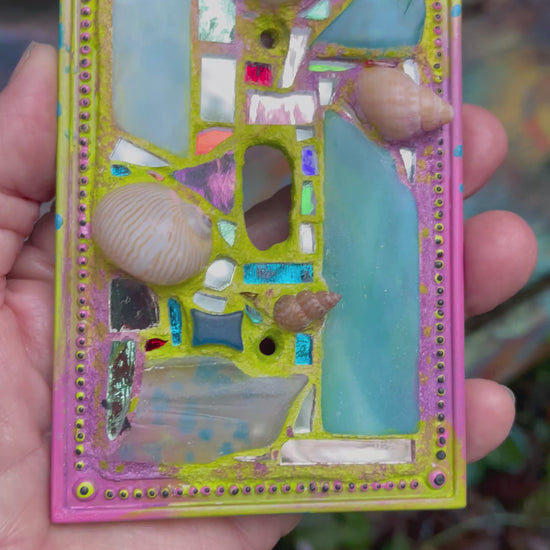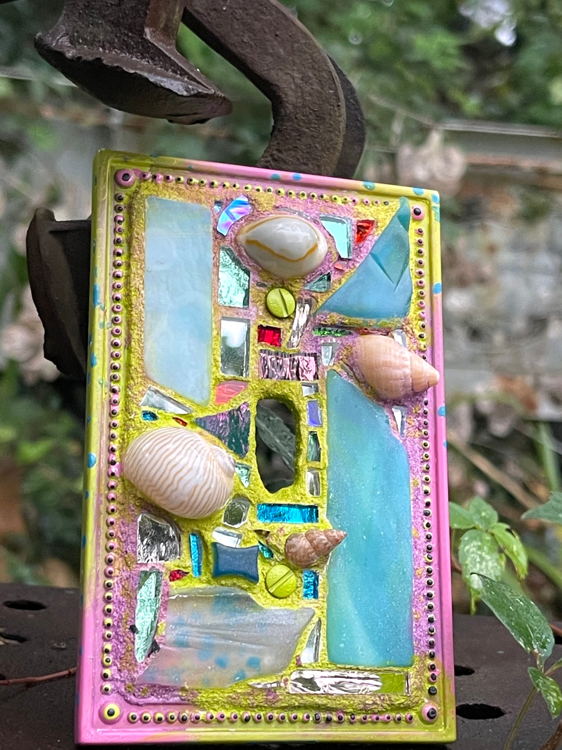 Single toggle mirror mosaic and sea shell light switch cover as mini wall art